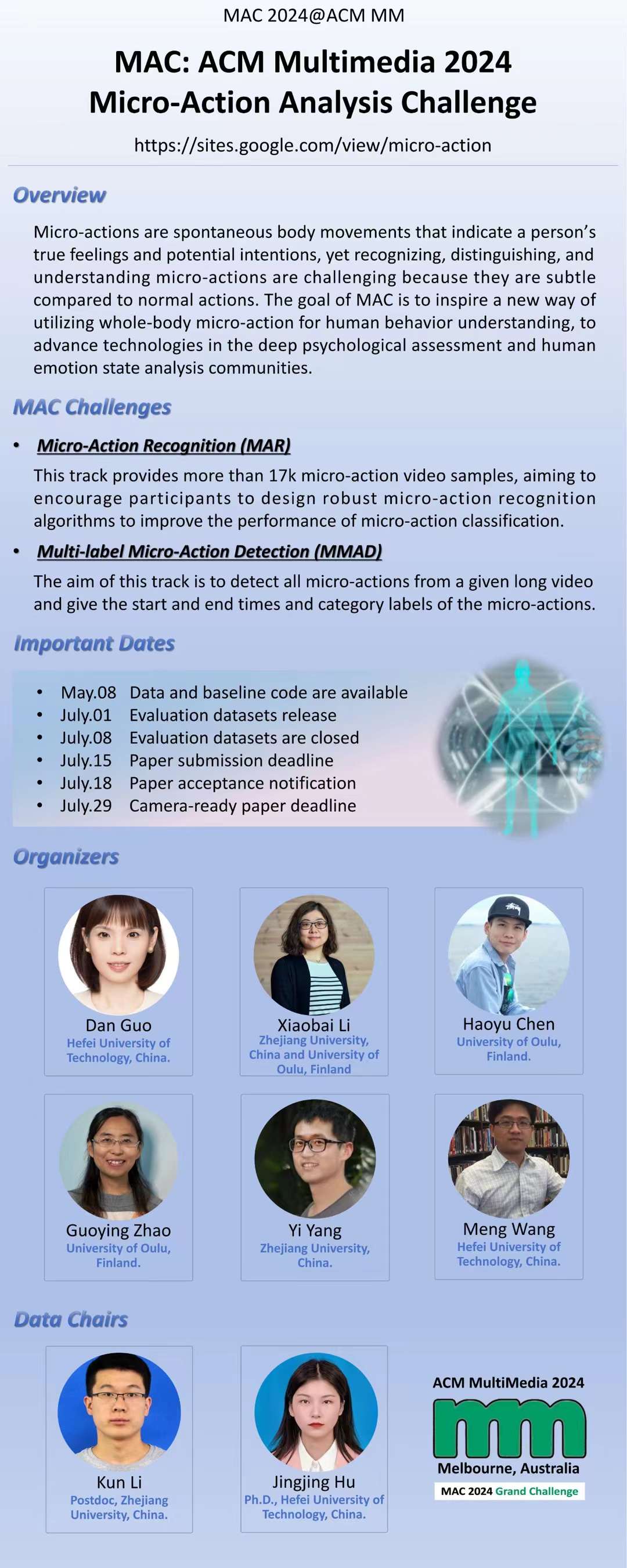 1.MAC 2024: ACM Multimedia 2024 Micro-Action Analysis Challenge,Challenge Initiator