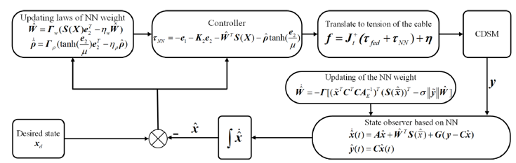 全面考虑了绳索摩擦、变形和绳孔间隙,提出基于神经网络自适应观测器的绳驱机械臂的自适应控制方法,实现了高精度位姿控制。
