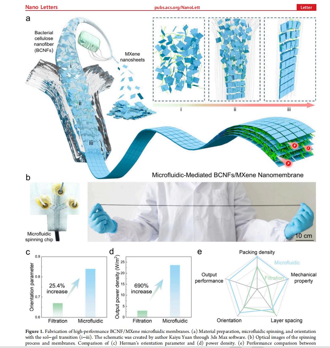 纳米纤维素Mxene序构化纺膜构筑盐差发电器件发表在Nano Letter